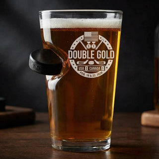 USA Hockey Double Gold - Hockey Puck Embedded Glassware