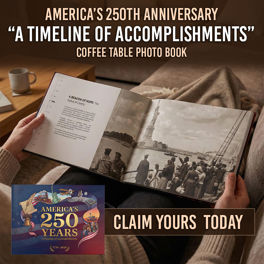 Celebrate the American journey from independence to innovation with this beautifully crafted hardcover coffee table book. America’s 250 Years: A Timeline of Accomplishments presents a curated visual narrative spanning two and a half centuries of history, achievement, and national milestones — designed to be displayed, shared, and preserved.