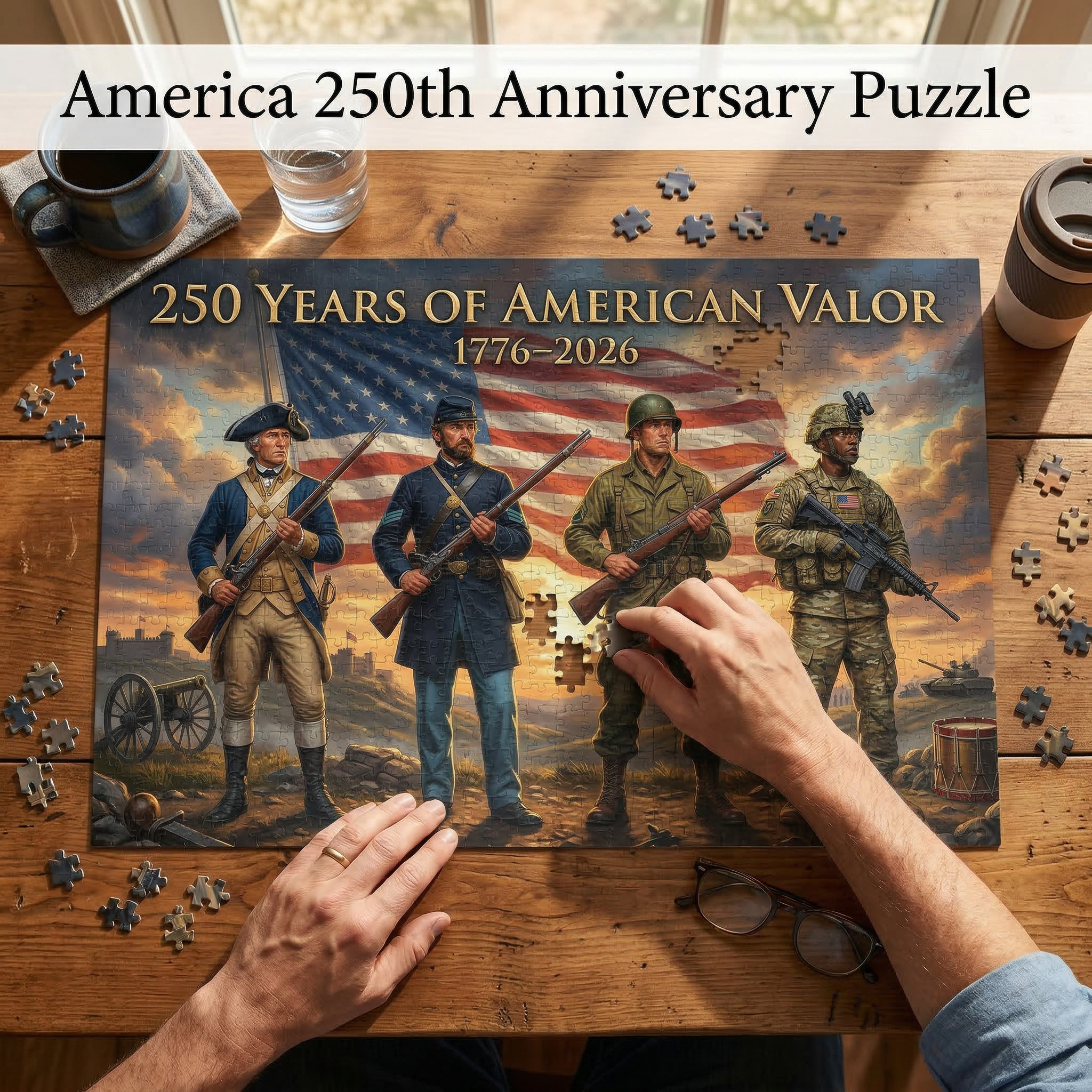 250 Years of American Valor Jigsaw Puzzle — 1776–2026 Patriotic Military Tribute