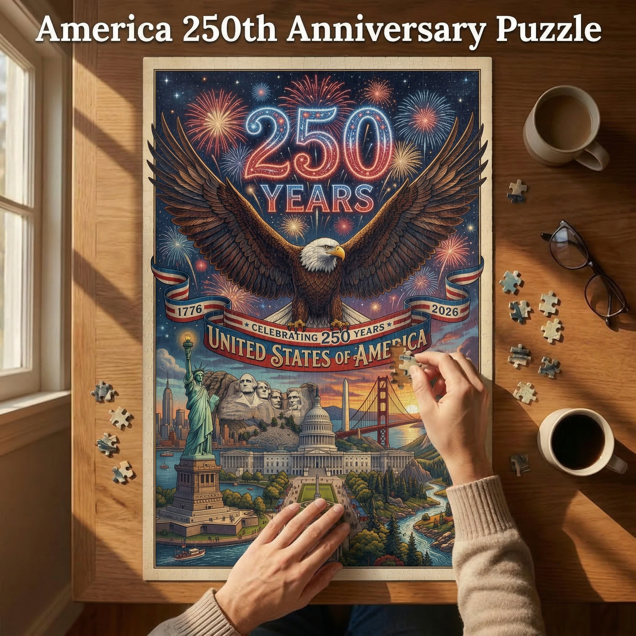 250 Years United States Puzzle — Patriotic Eagle & Landmarks Jigsaw
