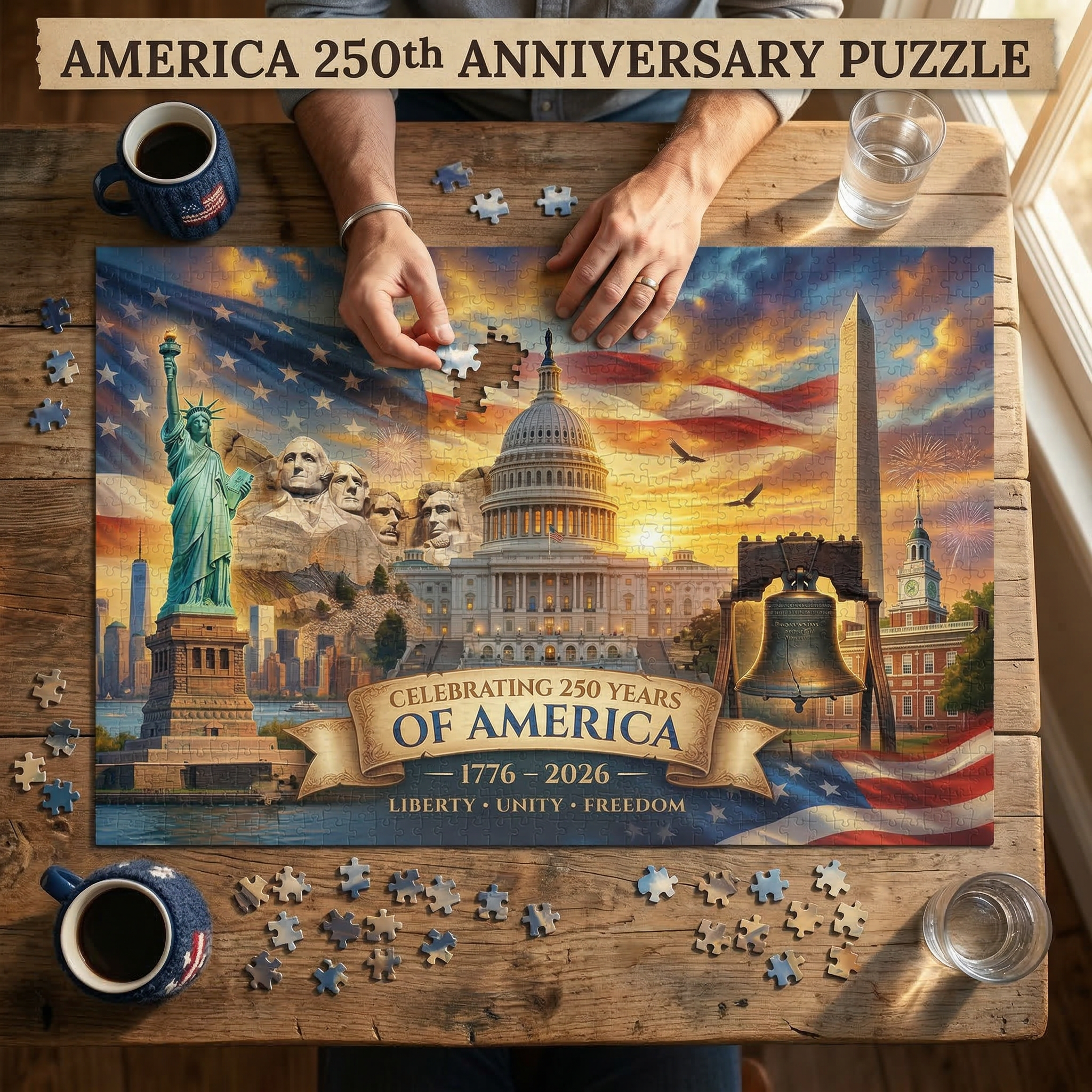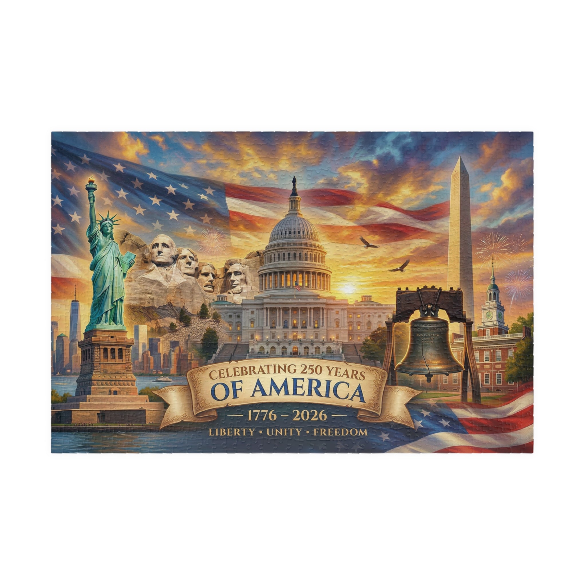 Celebrating 250 Years of America Jigsaw Puzzle — 1776–2026 Patriotic Landmark Puzzle