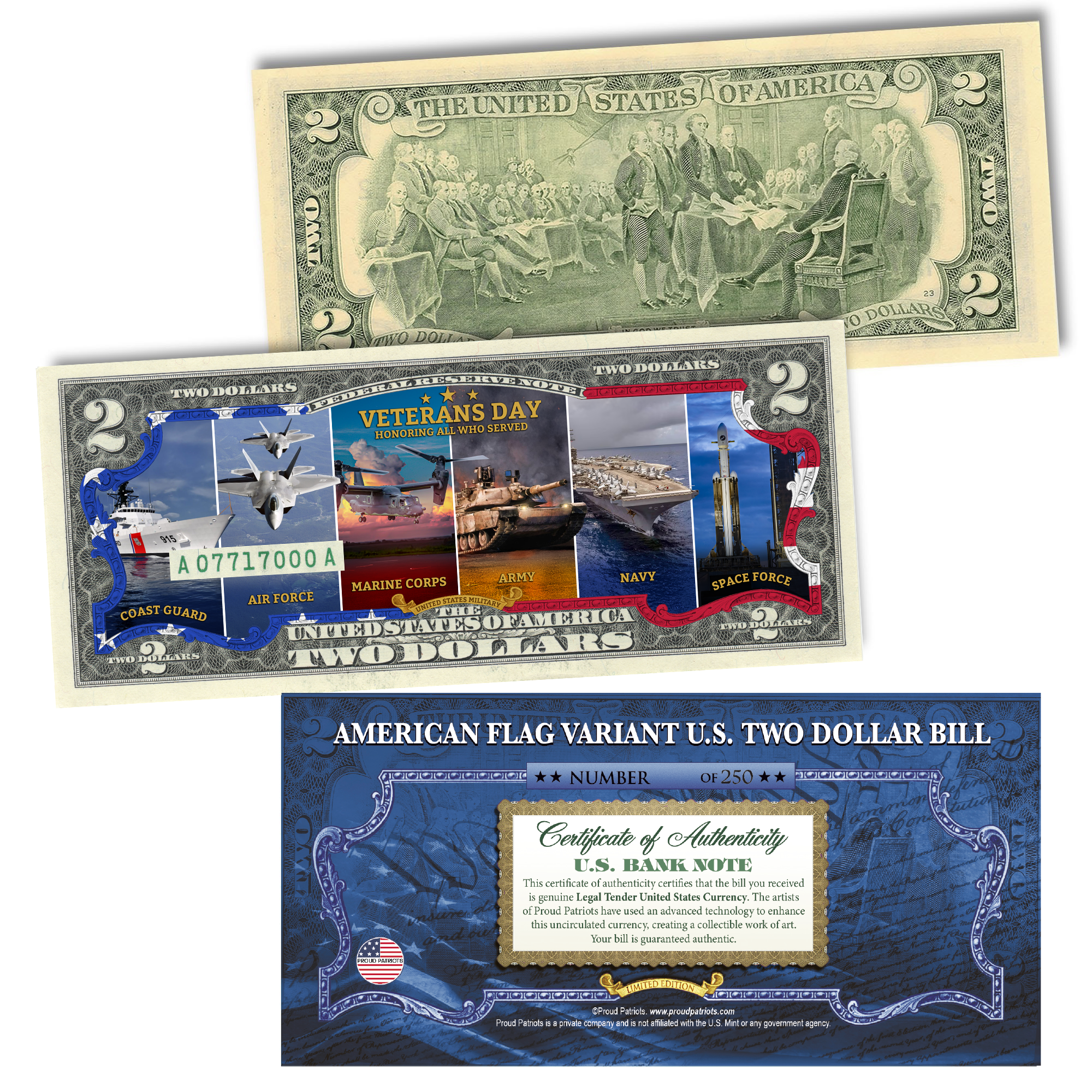 Commemorate their service with the Veterans Day $2 Bill, a powerful tribute to every branch of the United States Armed Forces.