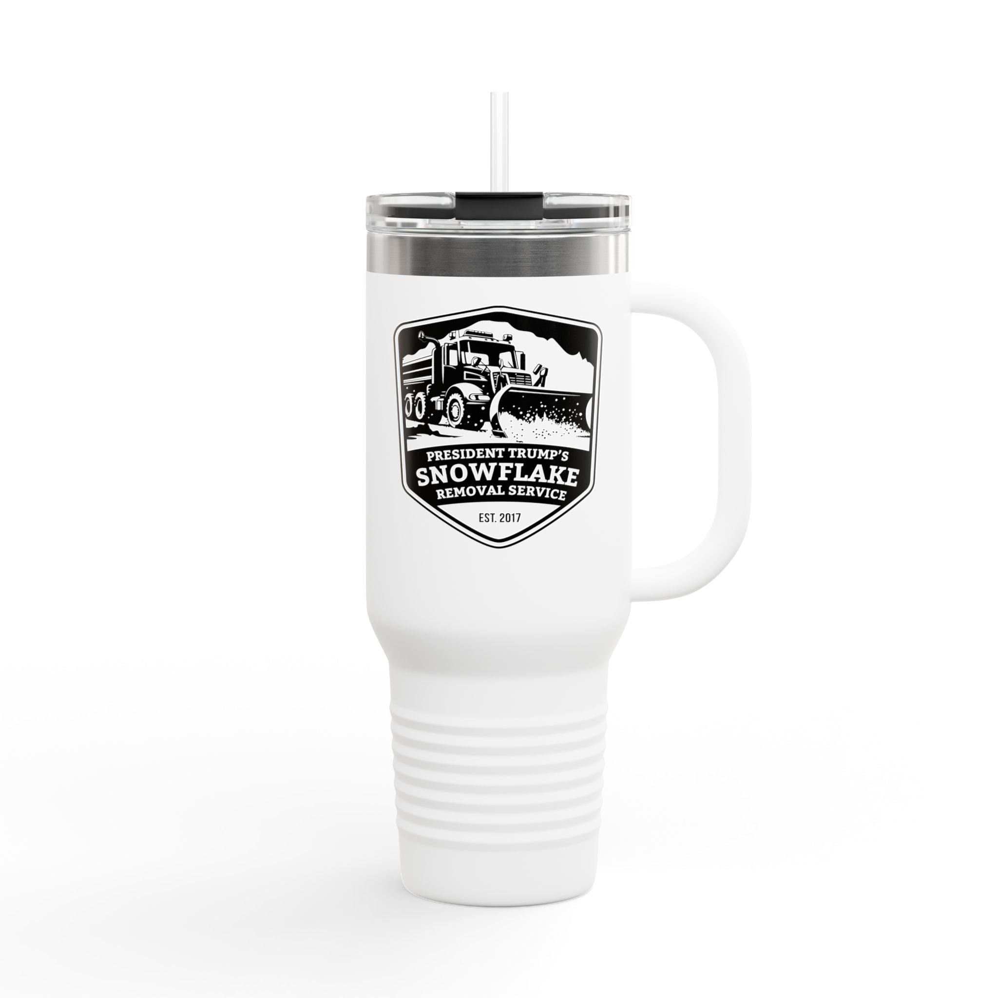 Keep your cool — or your coffee hot — with the Snowflake Removal Service 40oz Travel Tumbler. Built for patriots who like their drinks strong and their humor even stronger, this rugged tumbler is ready for every adventure, commute, or backyard BBQ. Whether you’re hitting the road, working outdoors, or just tackling the day like a boss, this tumbler’s large capacity and tough design have you covered.