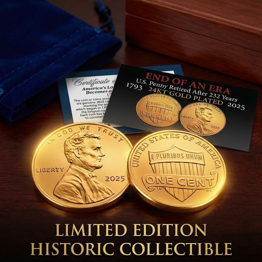 Each coin has been expertly gold-plated by a private mint to honor this historic milestone and transformed into a distinguished collectible. Every piece comes with a certificate of authenticity, preserving its place in history and your connection to the final chapter of the American penny.