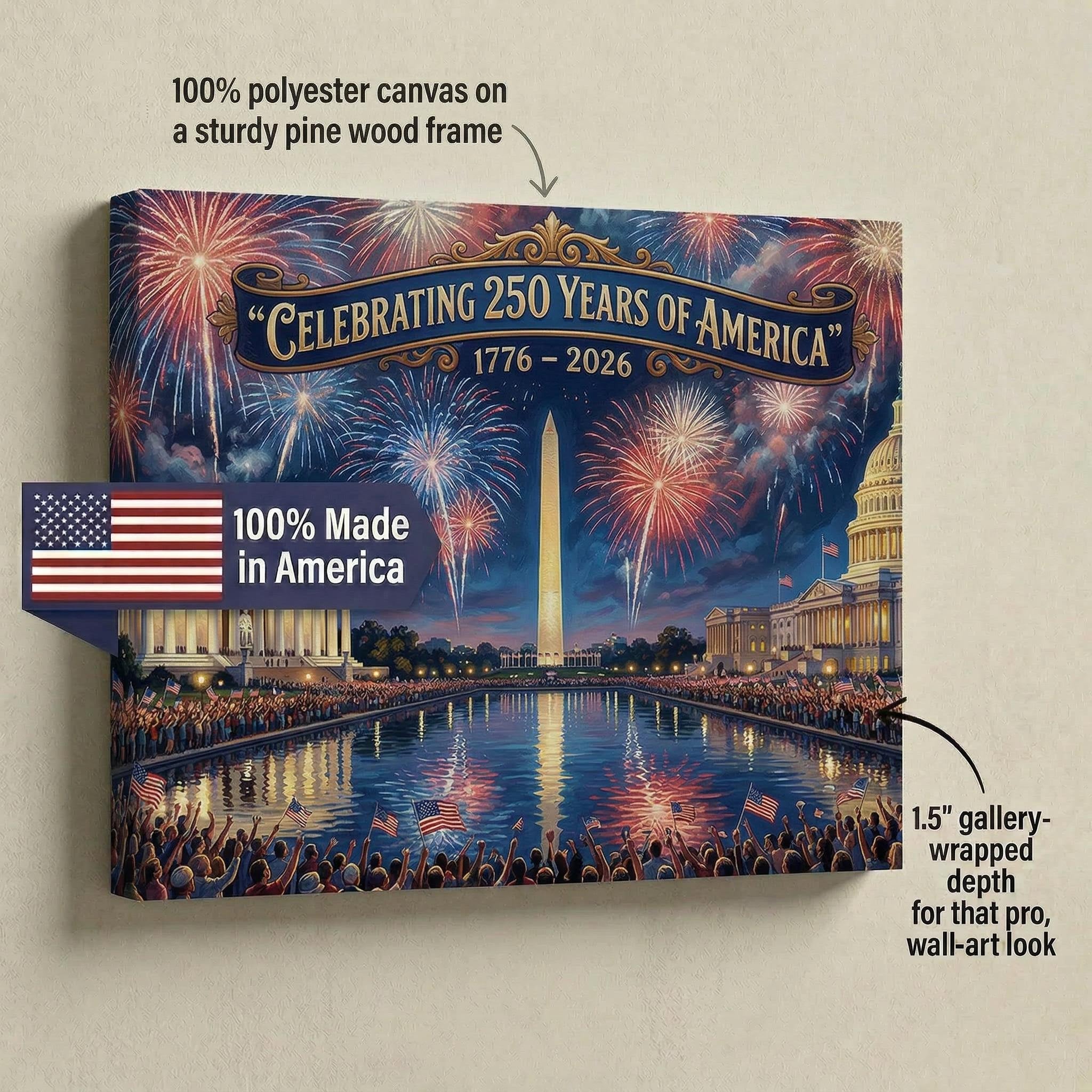 America's 250th Anniversary Fireworks Over DC Canvas (24"x 16")