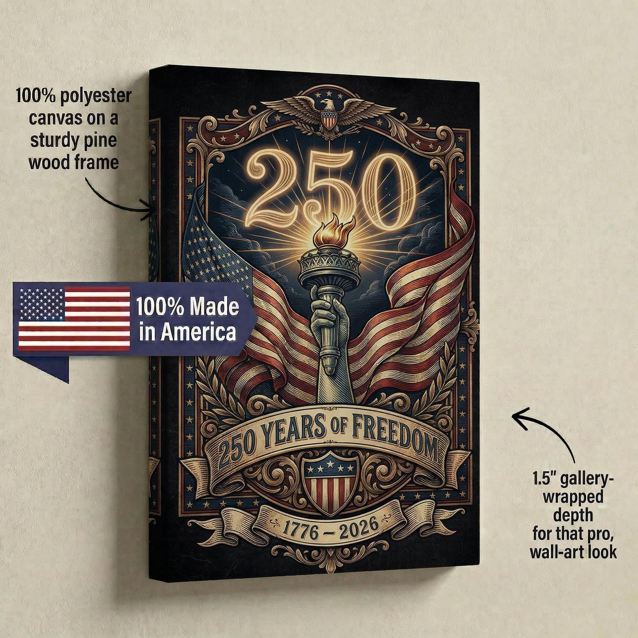 America's 250th Anniversary Torch Canvas (16"x 24")