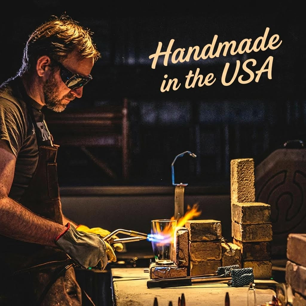 When it comes to American manufacturing, they stick to their guns. Every BenShot glass is handmade, one at a time, in their glass workshop in Wisconsin. This makes each piece truly one of a kind; no two glasses are alike! High-quality, crafted with care, and infused with pride by the person who made it - that’s how they do things at BenShot.