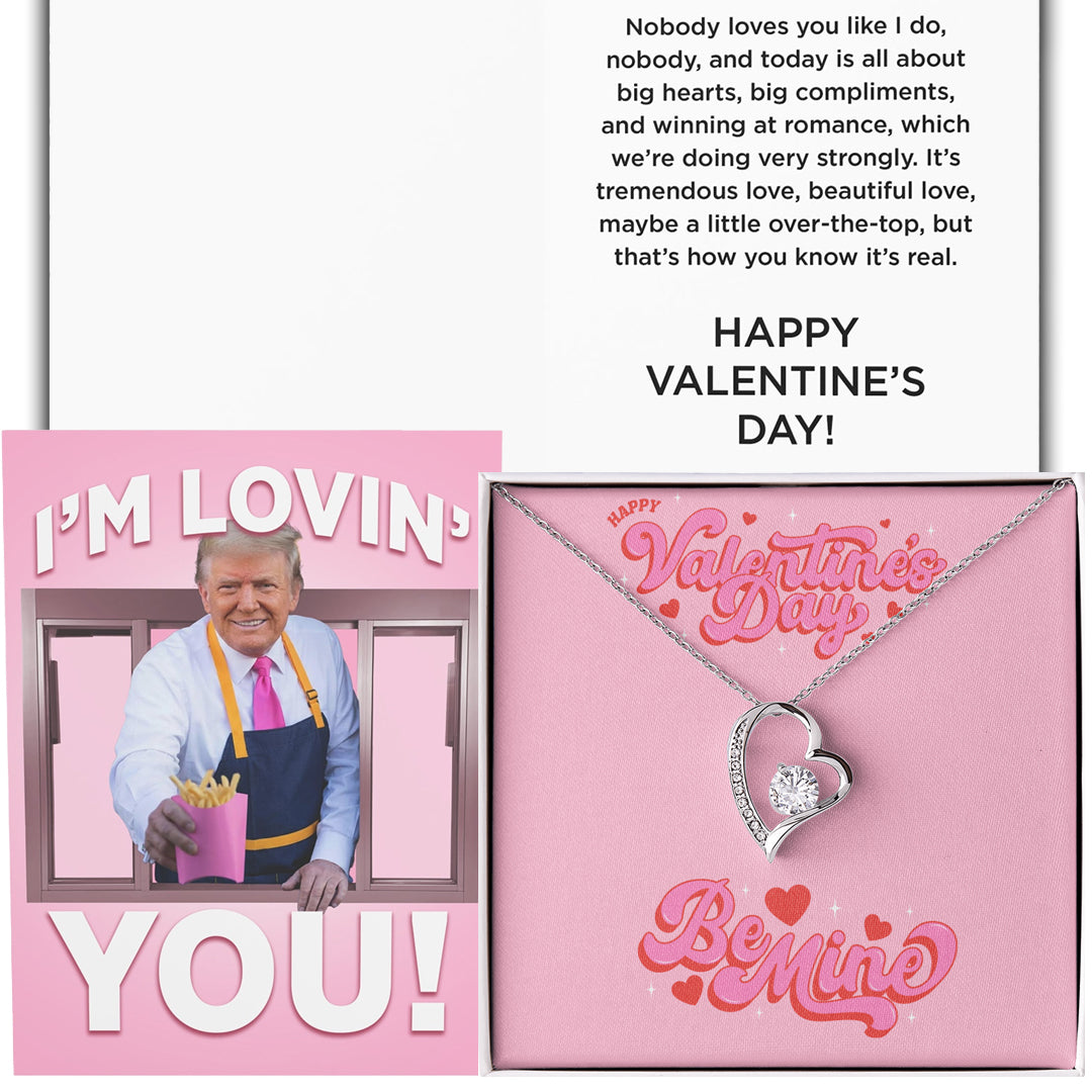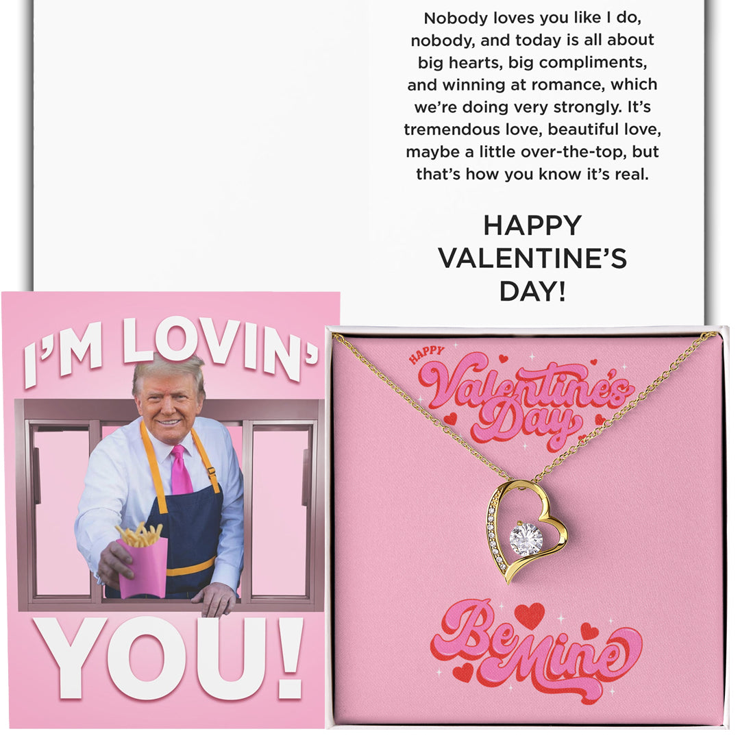 I'm Lovin' You Card + Happy Valentines Day Necklace (Valentines Day Gift Bundle)