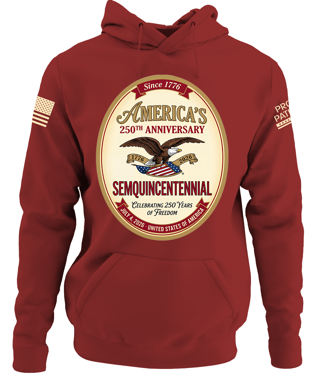 Proudly printed and shipped in America, with an American Flag and Proud Patriots logo on the sleeves!