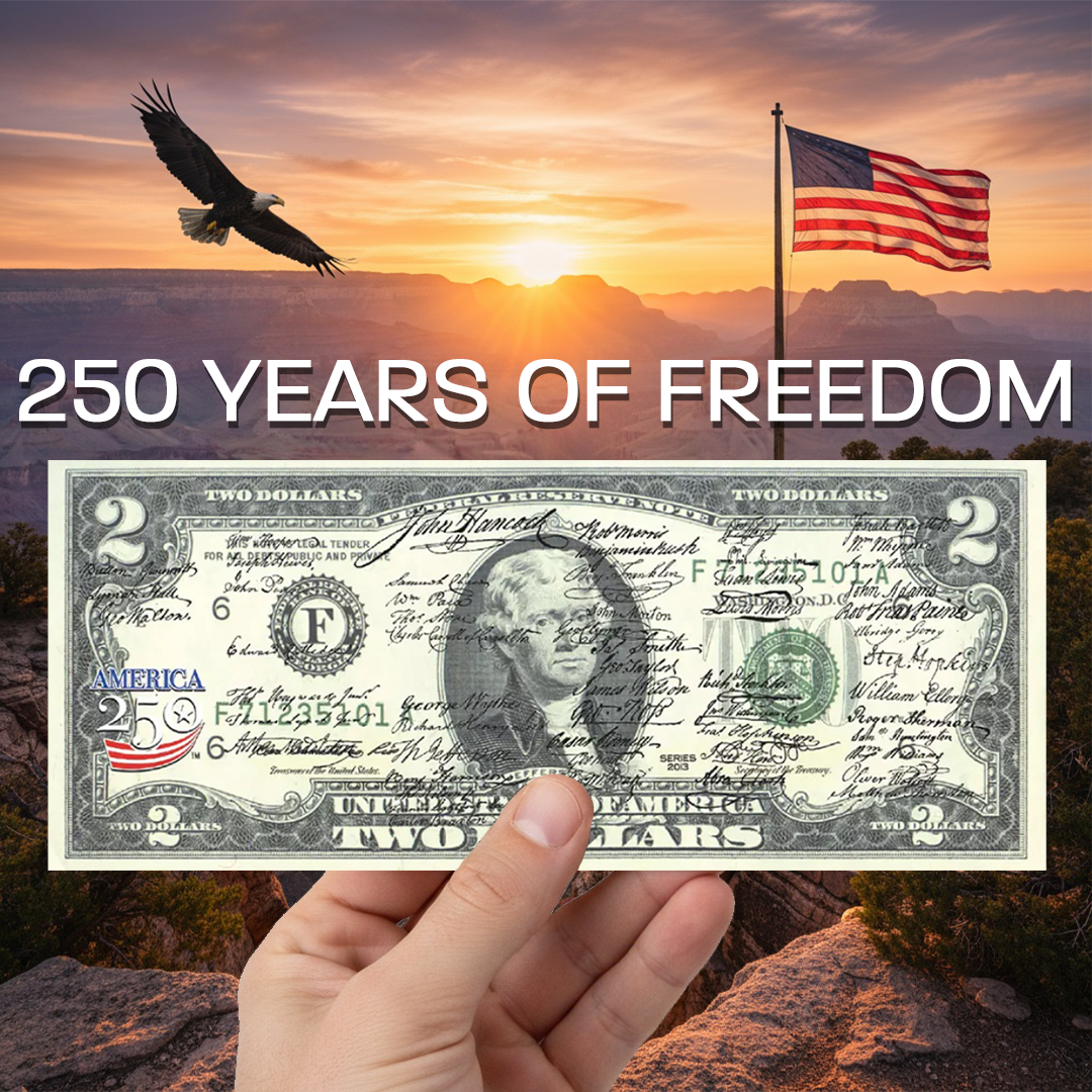 America's 250th Anniversary $2 Bill | Independence Day 2-Sided
