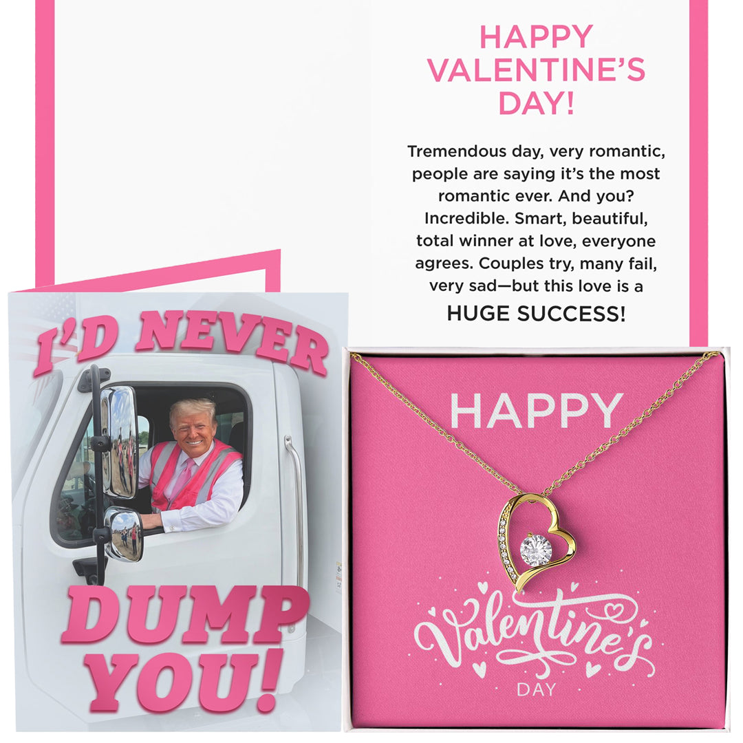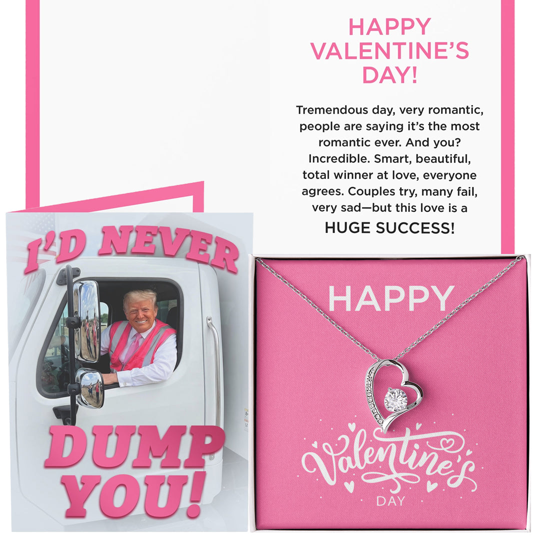I'd Never Dump You Card + Happy Valentines Day Necklace (Valentines Day Gift Bundle)