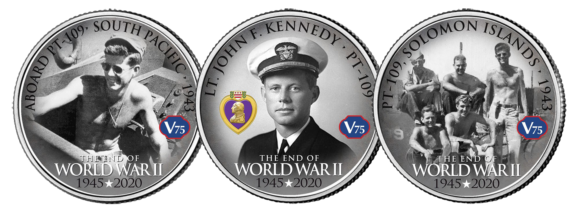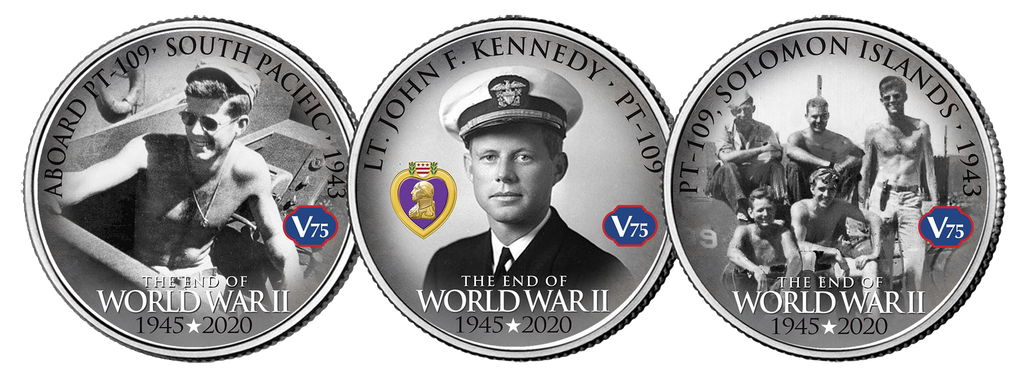 Honor one of our greatest presidents who fought for American freedom during WWII, John F. Kennedy, with our 75th World War II Aniversary JFK half dollar coin set. Claim your unique piece of history commemorating this event with our limited printed collectible coin.