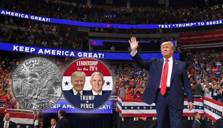 The 'Leadership' Eisenhower Dollar Coin includes an authentic U.S. coin with the United States President Donald Trump on the front. Each coin comes with a certificate of authenticity and is showcased in a beautiful acrylic case.