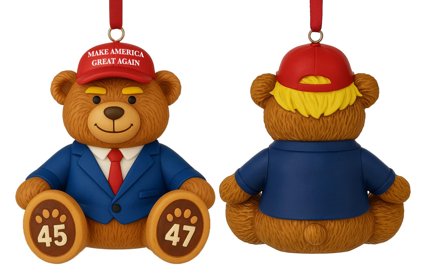 Introducing the limited edition MAGA Bear Christmas Ornament, crafted from premium resin for rich detail and strong durability. This collectible Christmas tree ornament will be approximately 3 inches in height.