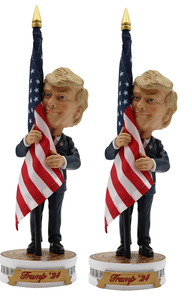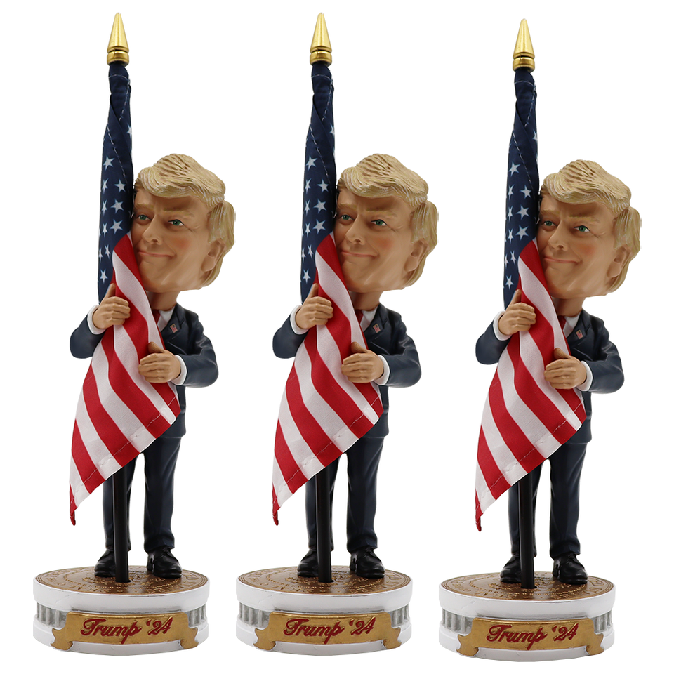 This bobblehead represents Trump's love for America and his triumphant journey back to the White House!
