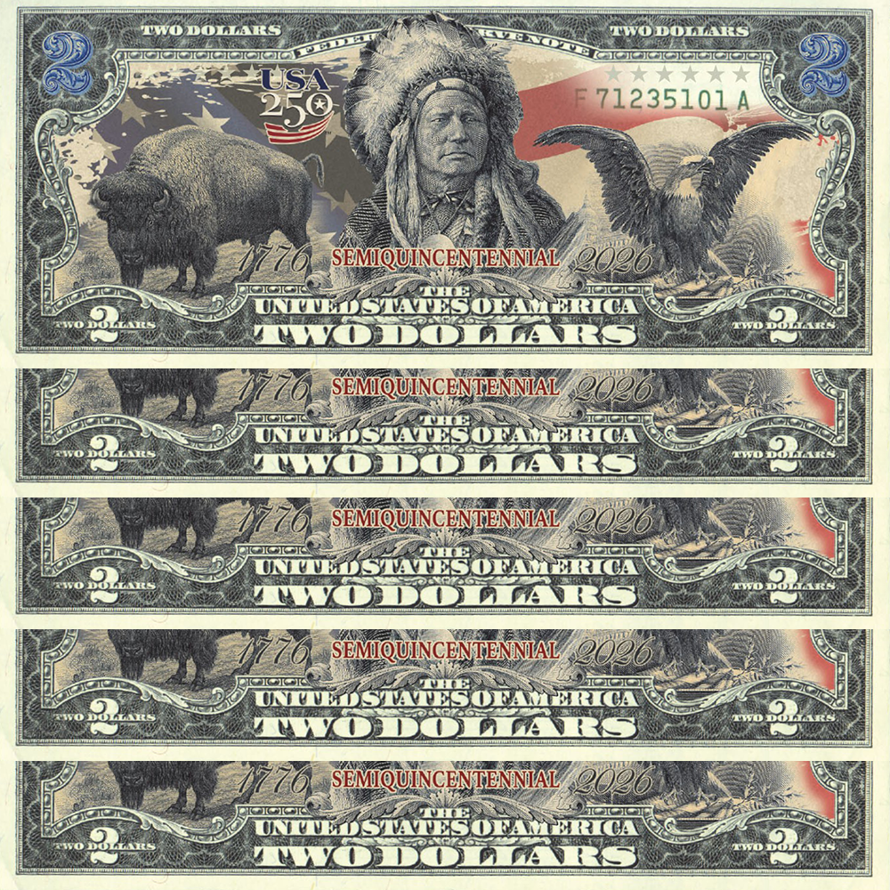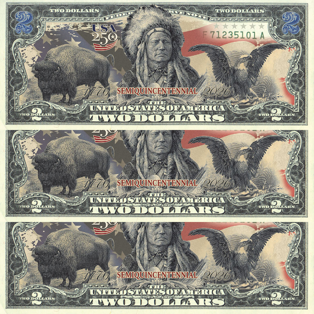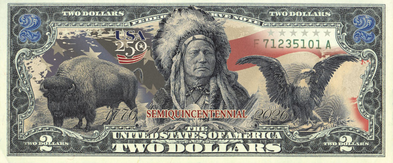 The First $2 Bill in History to Feature the Black Eagle, Indian Chief & American Bison — Yours to Own Forever