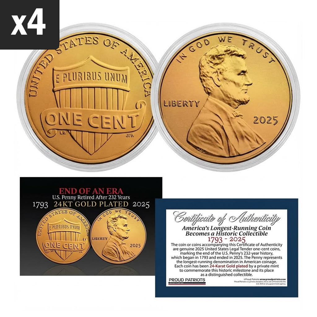 America’s Last Penny: 24KT Gold-Plated Penny (Dated 2025) with Certificate