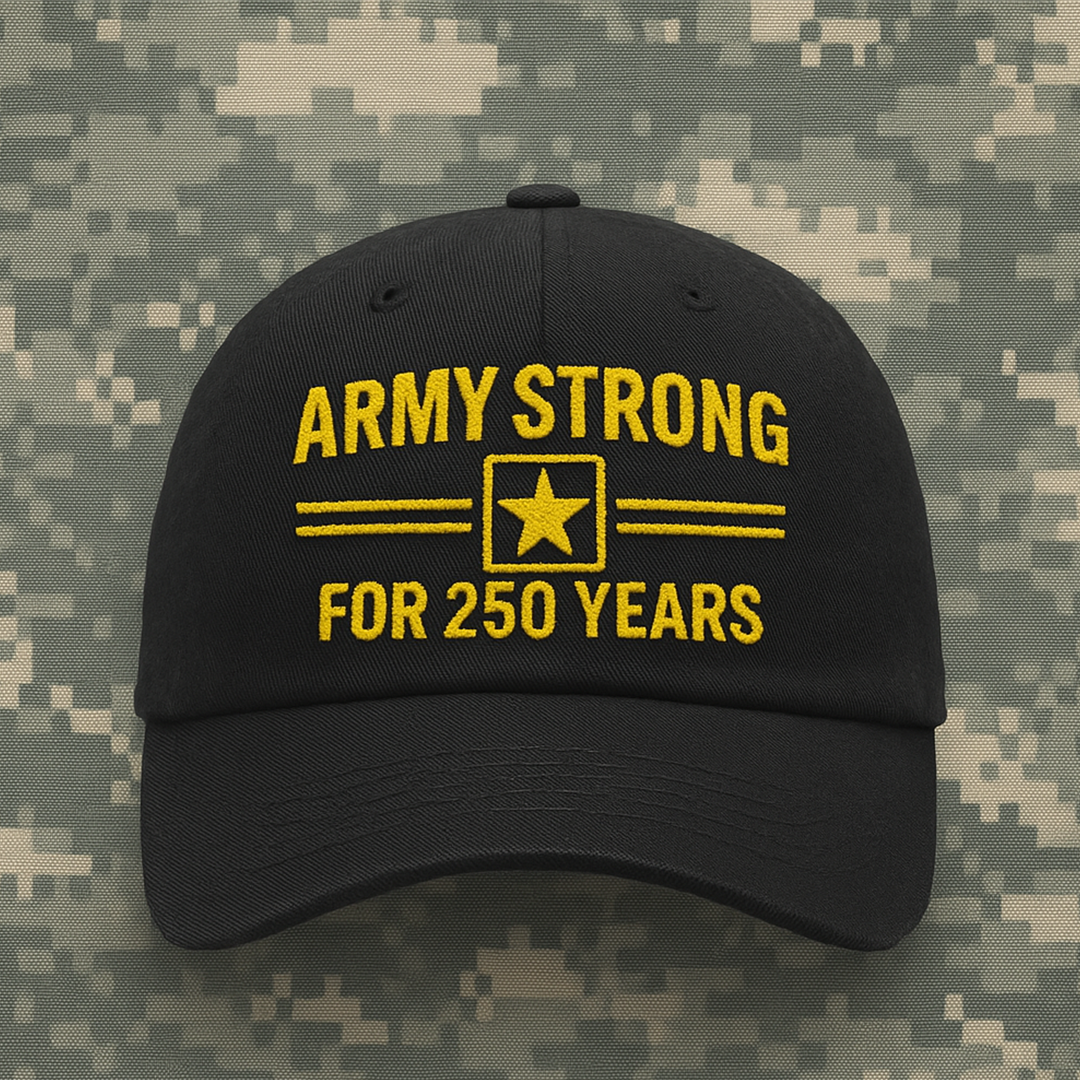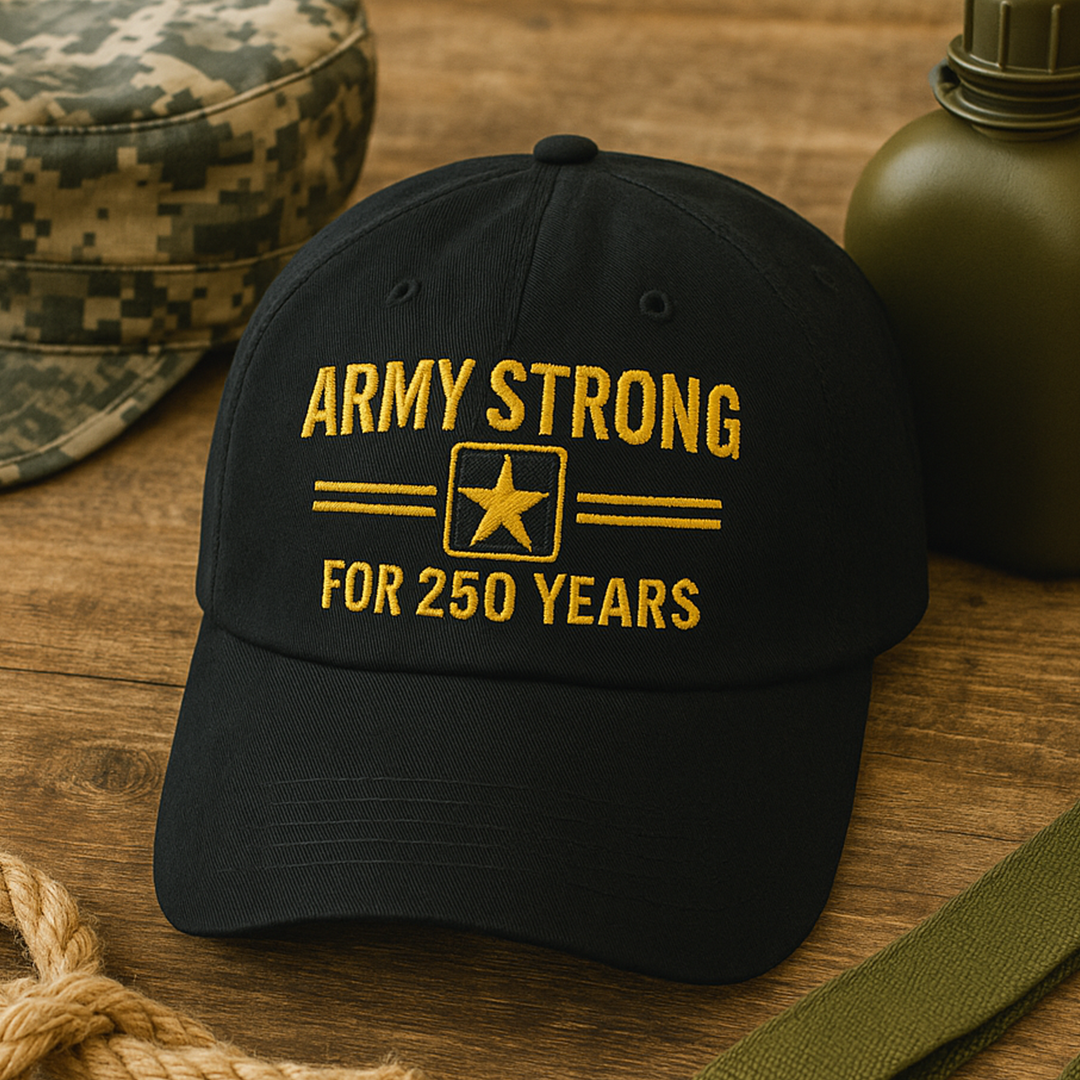 Since 1775, the U.S. Army has stood as a symbol of unmatched strength, courage, and service. Celebrate this historic 250th anniversary in style with the Army Strong Hat — a bold and timeless tribute to America's soldiers.