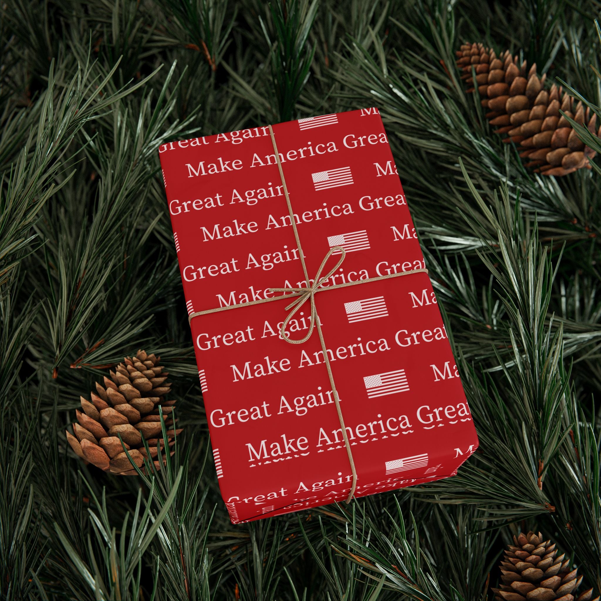 Make every gift a statement with this bold and patriotic Make America Great Again Wrapping Paper. Featuring a striking red background with repeating text and American flag motifs, this paper captures the spirit of pride and celebration. Whether you’re wrapping holiday gifts, birthday surprises, or special keepsakes, this design adds unmistakable flair and energy to every package.
